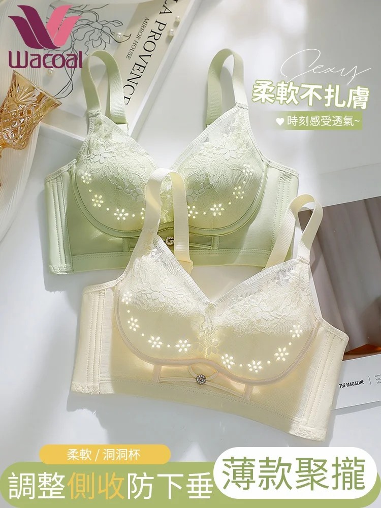 【華歌爾】內衣女薄款透氣聚攏小胸收副乳防下垂調整型女士無鋼圈蕾絲