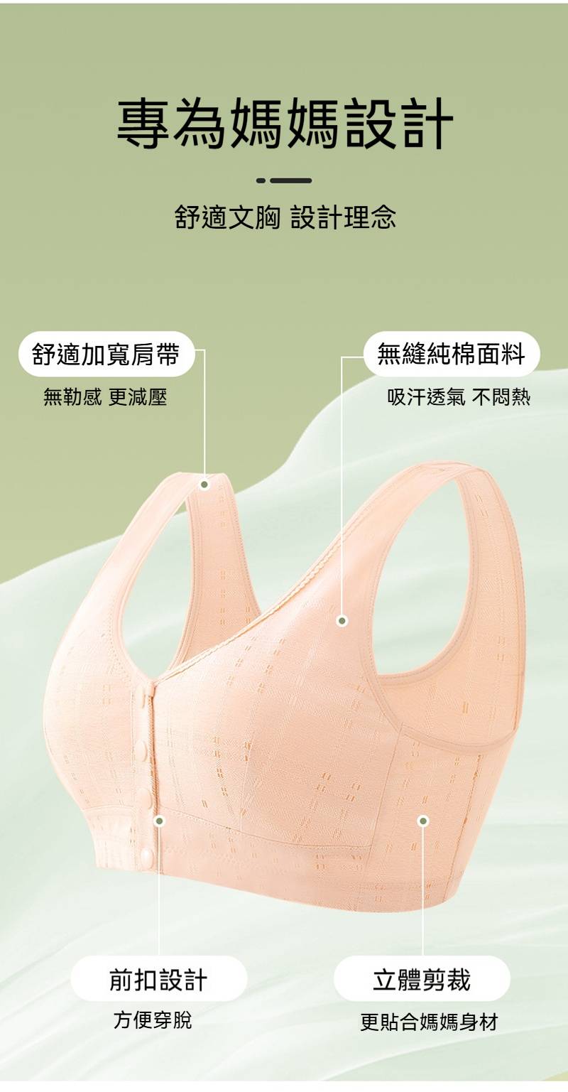 2分鐘前無鋼圈純棉前扣內衣,特價買一送二,媽媽超愛的純棉布料親膚舒適,前扣很好穿脫超方便 - 團購五件最低價,買二送三 NT$1498