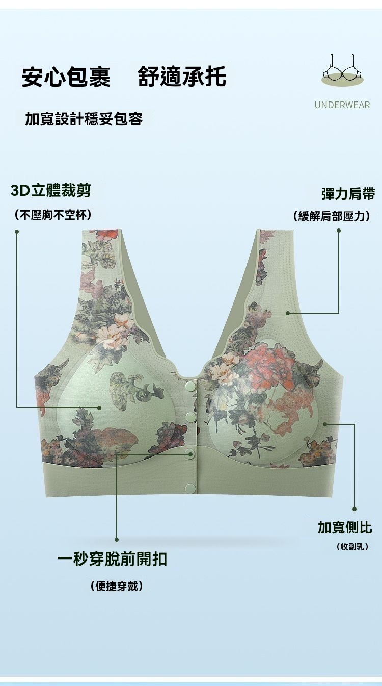 20分鐘前【買2送2 免運】真的沒穿過這麼乾淨,舒服的一款前扣內衣! 一秒穿脫,回購了3次,輕薄透氣,舒適聚攏,收副乳,防外擴下垂,穿上胸型都好看了不少! - 限時下殺【限量100组】置3送3 NT$1298 均價216