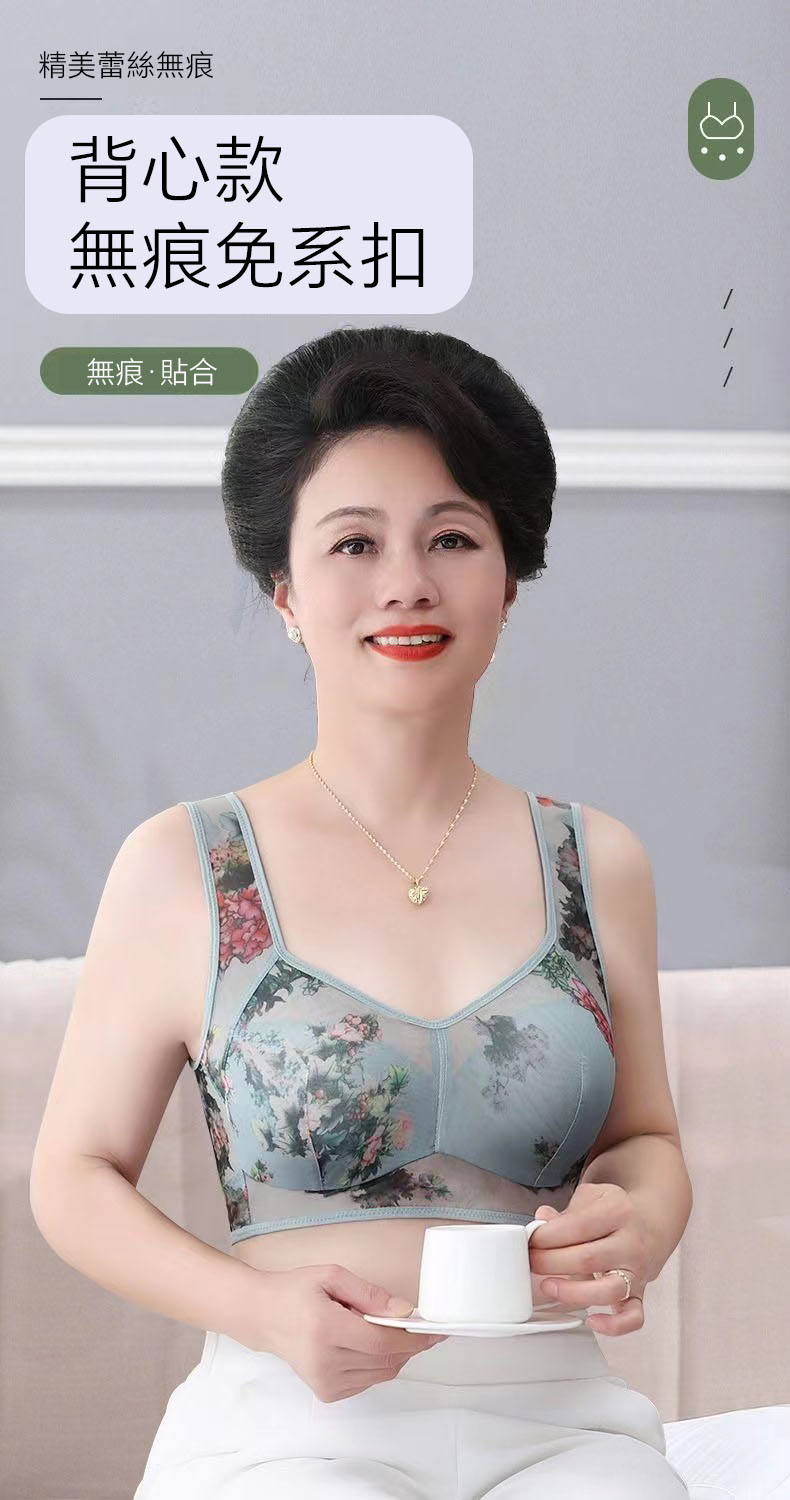 4分鐘前40-100公斤~中老年無痕内衣女文胸無鋼圈大胸顯小收副乳背心式睡眠文胸內衣 - 2件僅需NT$1028(均價NT$514)