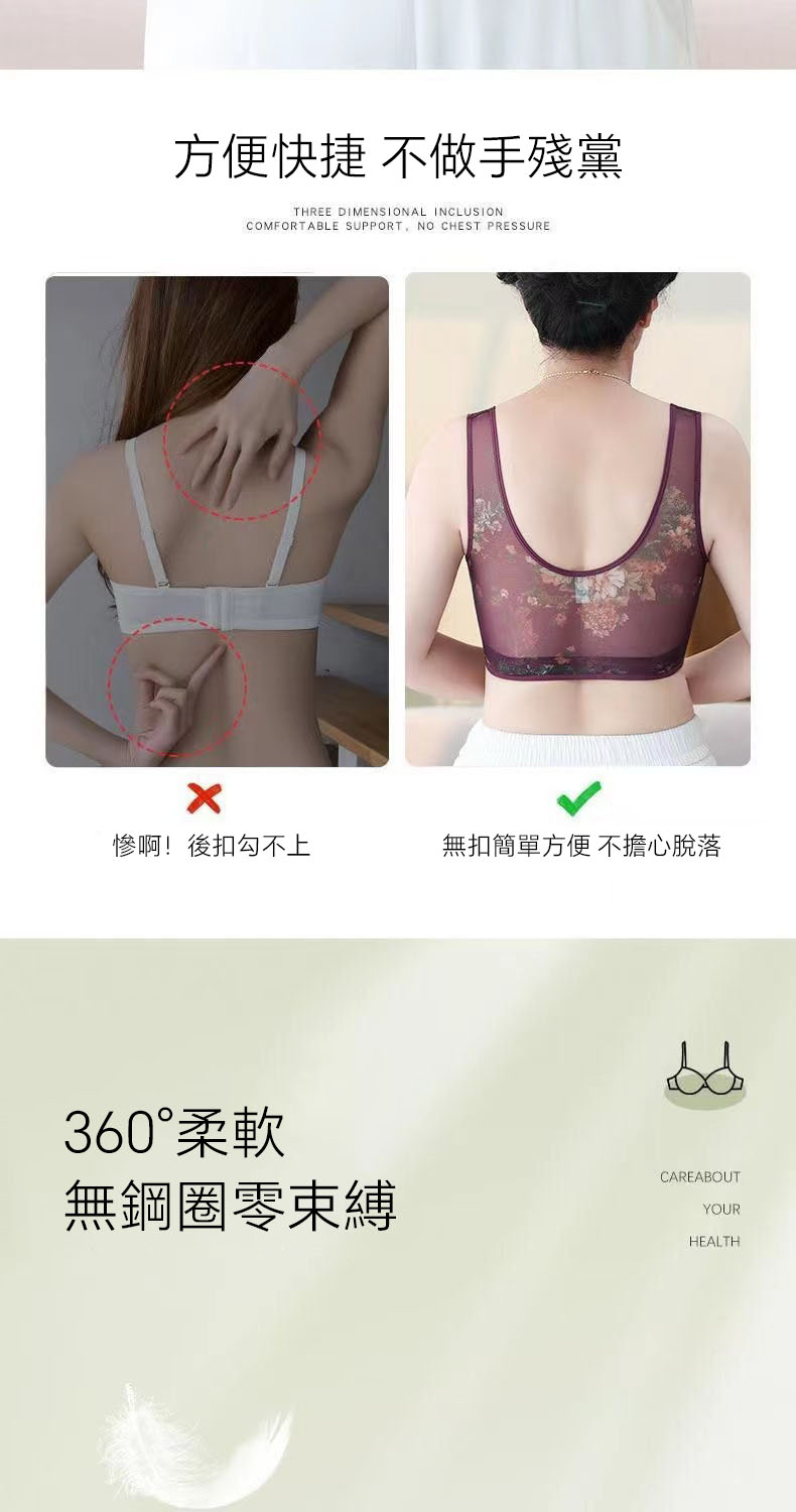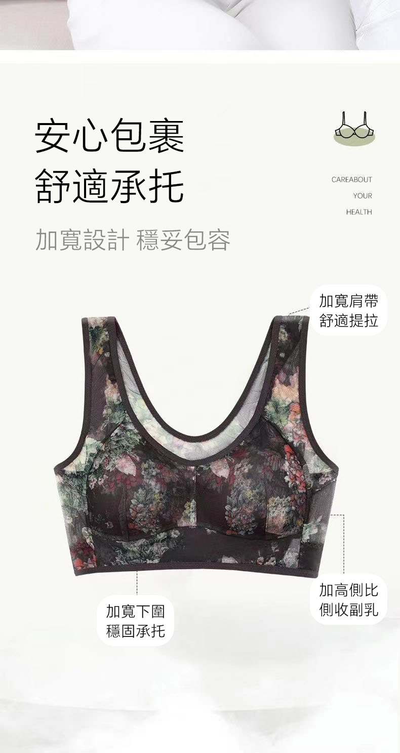 4分鐘前40-100公斤~中老年無痕内衣女文胸無鋼圈大胸顯小收副乳背心式睡眠文胸內衣 - 3件僅需NT$1128(均價NT$376)