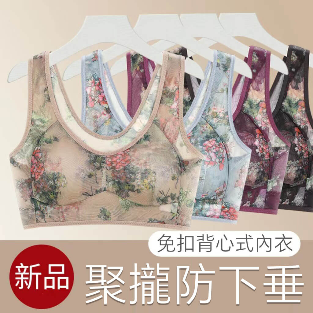 7分鐘前40-100公斤~中老年無痕内衣女文胸無鋼圈大胸顯小收副乳背心式睡眠文胸內衣 - 5件僅需NT$1298(均價NT$260)